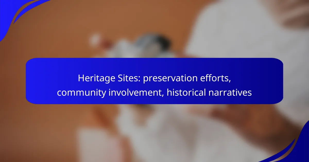 Community involvement is crucial in the preservation of heritage sites, as local groups often lead initiatives to raise awareness and promote conservation efforts. These initiatives can include volunteer programs for site maintenance, educational workshops, and cultural events that celebrate local history.