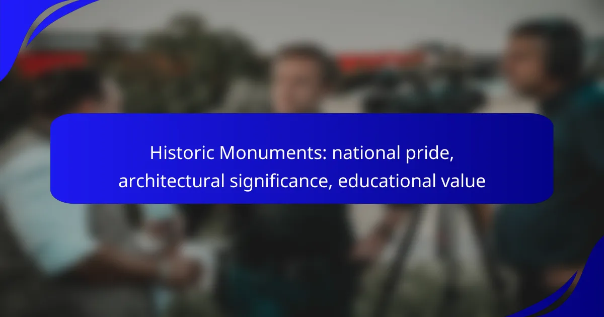 Historic monuments serve as powerful storytelling tools that convey the narratives of past societies. Each monument encapsulates stories of cultural heritage, significant events, and the evolution of architectural styles, providing context that enriches historical education. For example, visiting a battlefield monument can lead to discussions about the events that took place there and their impact on national identity.